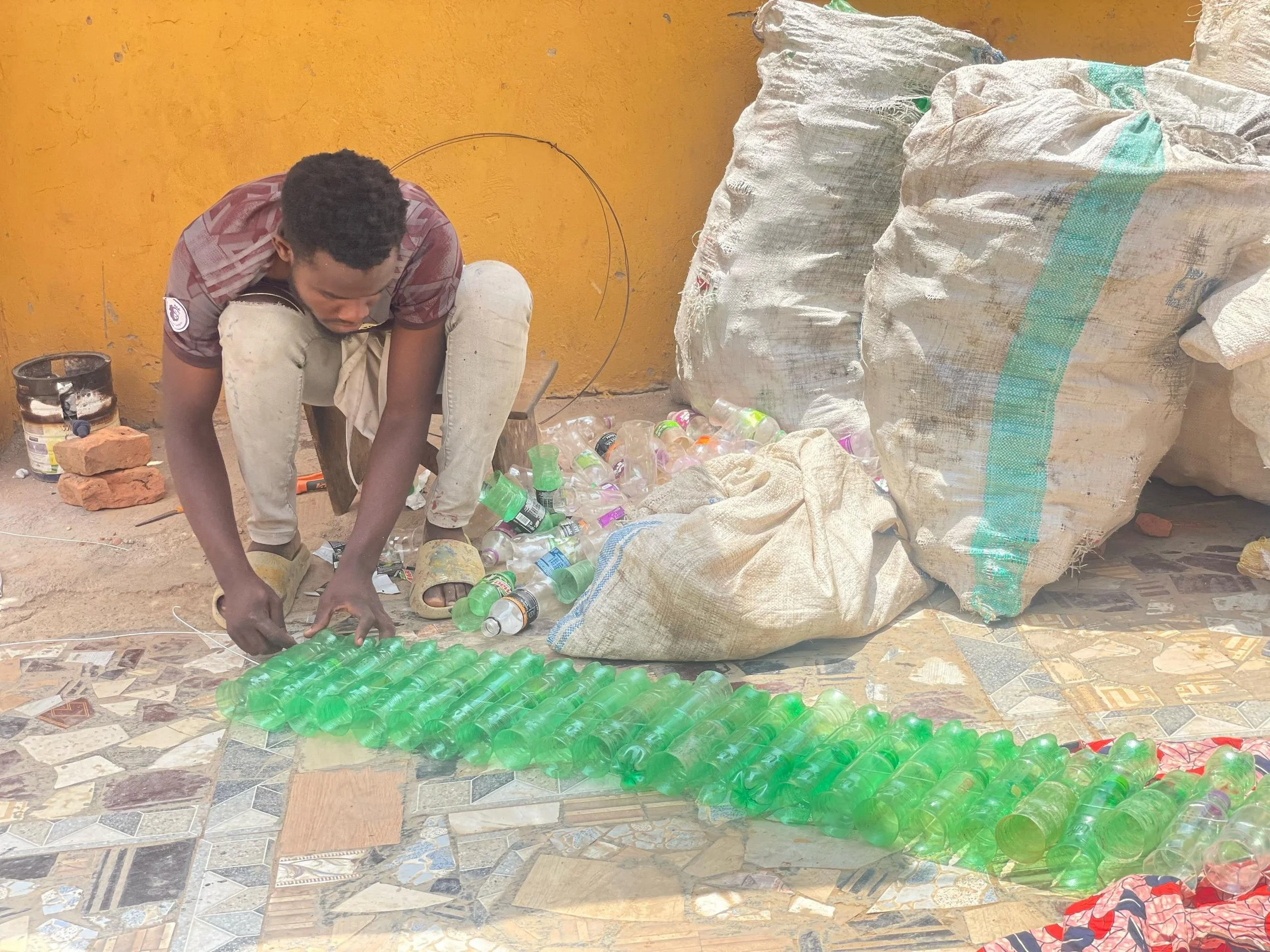 Collecting plastic waste: Wastform gathers discarded plastic bottles from streets, markets, and fields.