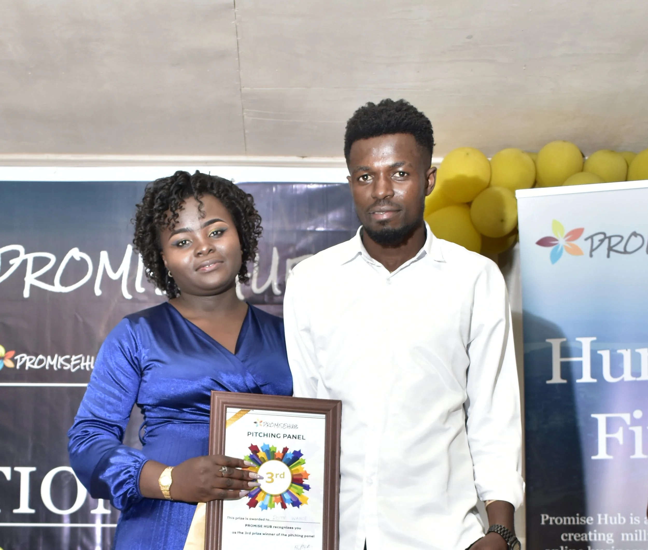 Ruth Wanie and Fabrice Abel, both game-changers from the 10th cohort of Promise Hub, came together during their three-month journey of training and mentorship in digital entrepreneurship and community innovation. Passionate about nutrition and community well-being, they co-founded Ruthafia. A locally produced, affordable, and nutrient-rich porridge designed to prevent and reduce child malnutrition in Nakivale.